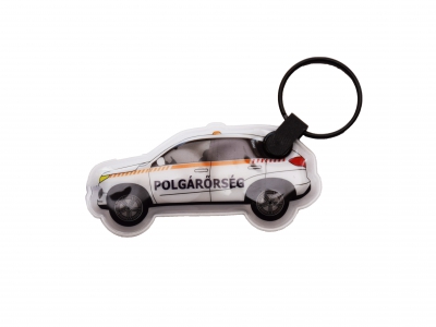 Beépített LED-es polgárőr autót mintázó kulcstartó.