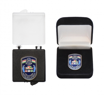 5, 10, 15, 20 vagy 25 év szolgálatért köszönetképpen adható tűzzománc kitűző plüss vagy műanyag díszdobozban.
