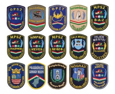 Folyamatosan rendelhető, raktárkészleten tartott hímzett címerek.