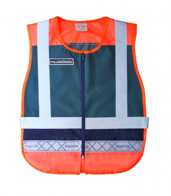 Egyedi, az OPSZ lovas tagozatának rendszeresített jól láthatósági mellény.